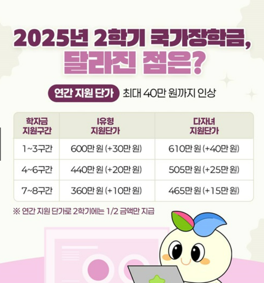 2025학년도 2학기 국가장학금 2차 신청 기간