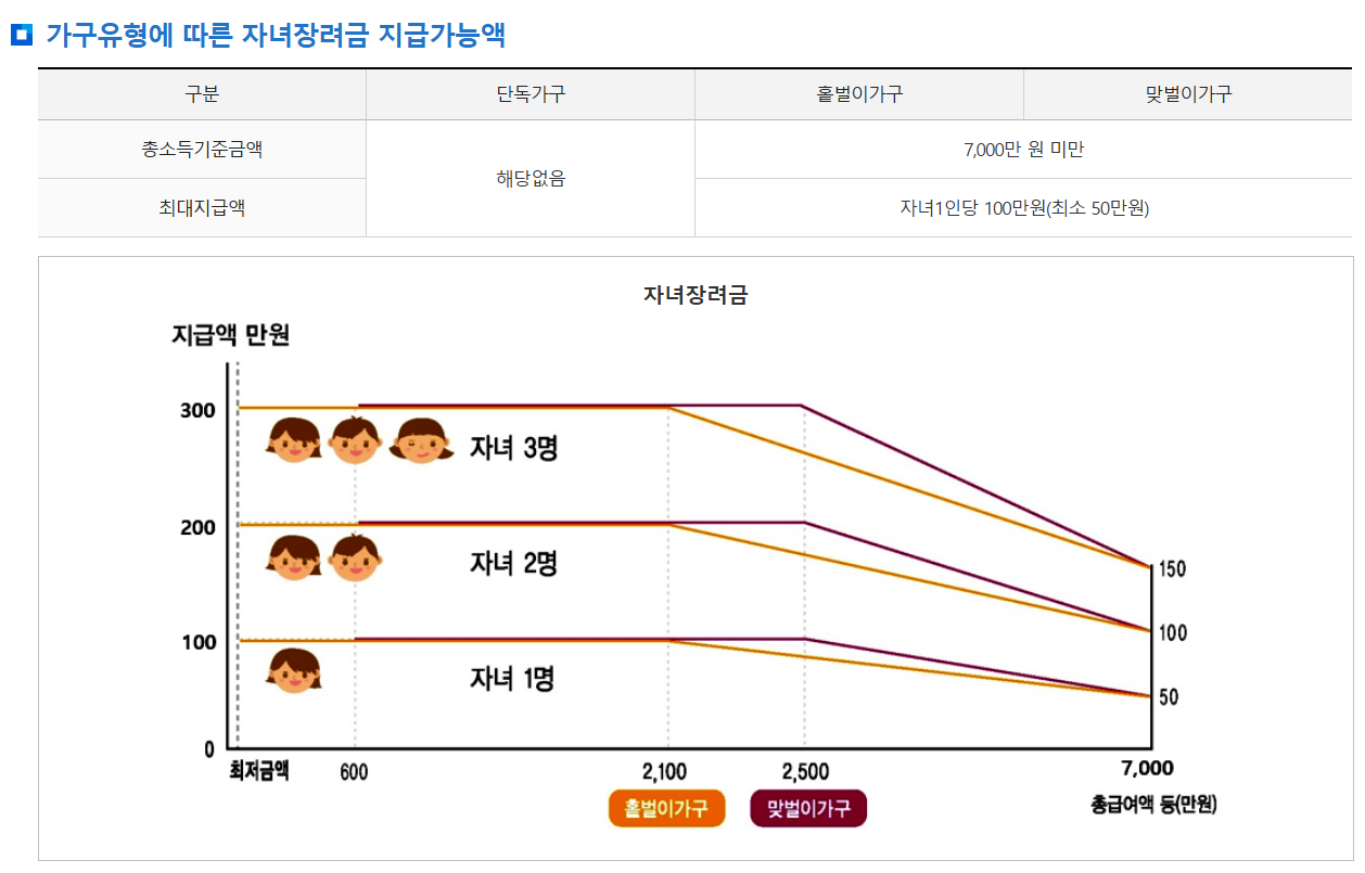 가구유형별 자녀장려금 신청자격 조건