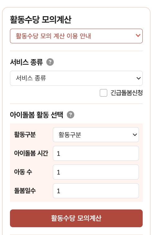 * 아이돌보미 활동수당이 궁금하시다면 모의계산 해 볼 수 있습니다.