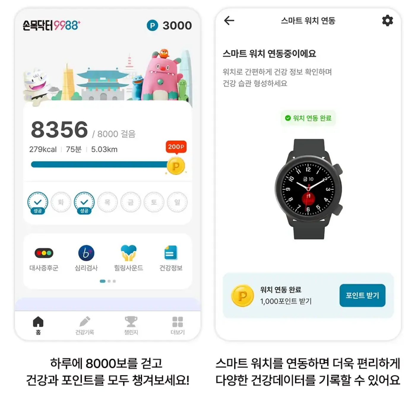 | 건강관리 미션 달성 | 500~1,000P |