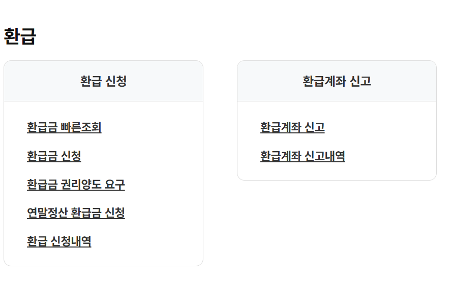 - 환급 계좌 사전 등록 가능 → 환급 시 자동 입금 처리