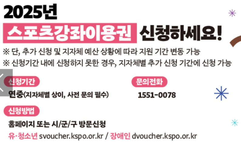 - 지원방식: 체육활동을 위한 바우처 형태의 현금성 지원
